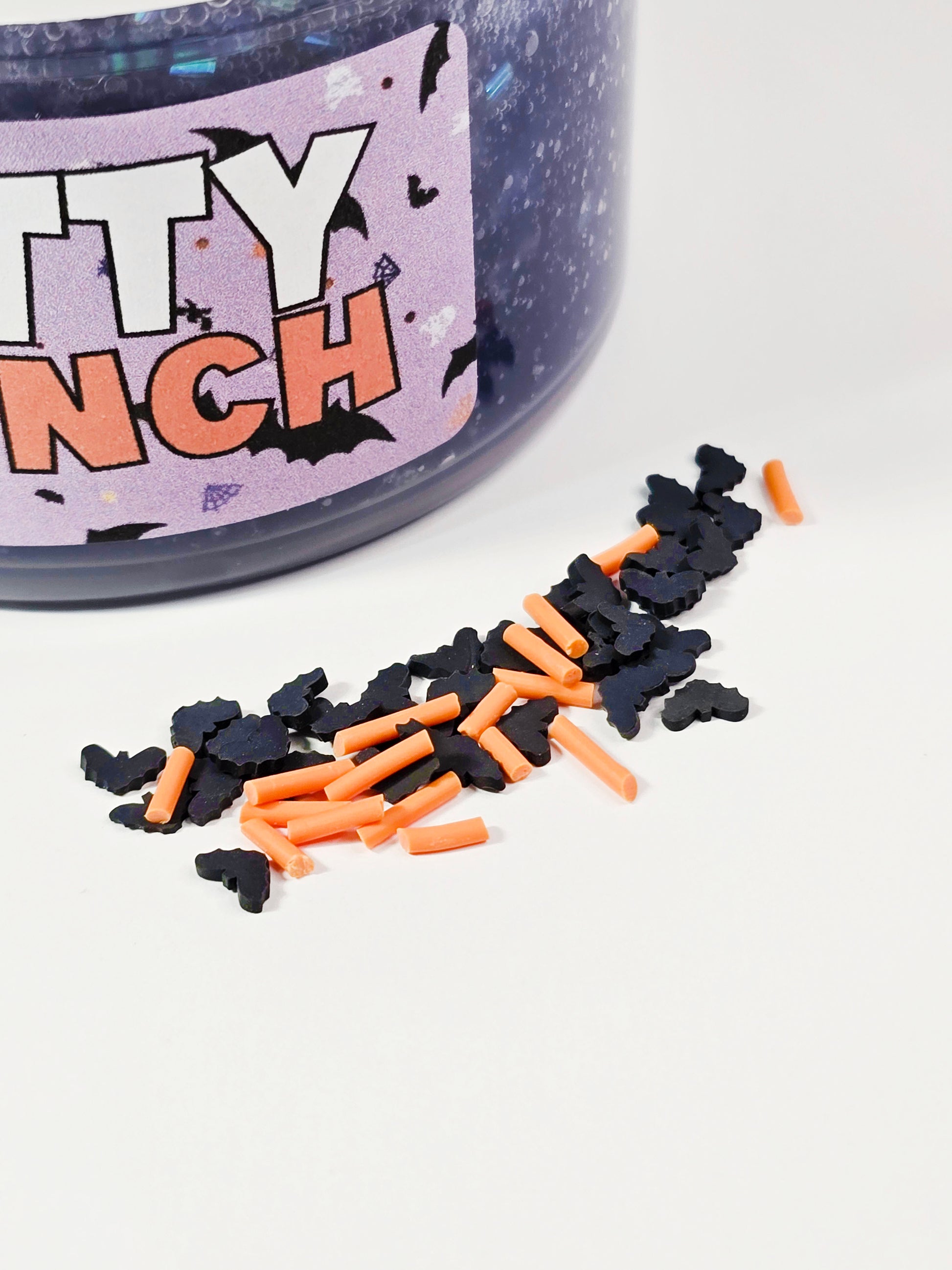 ADDONS - topped with fun bat sprinkles, glitter, orange sprinkles and a super cute bat.