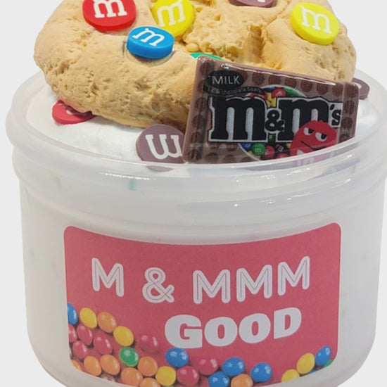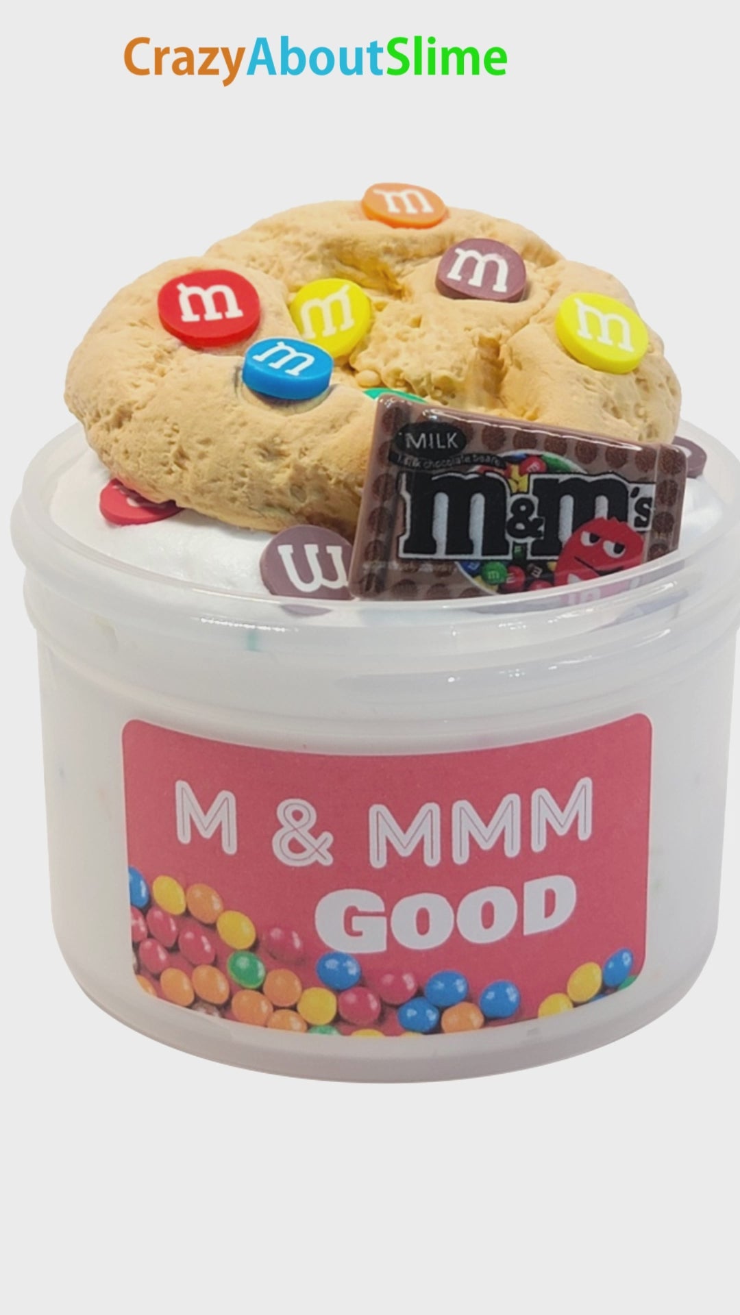 ADDONS - topped with realistic cookie clay mold, M&M charm, M&M sprinkles, and floam beads.