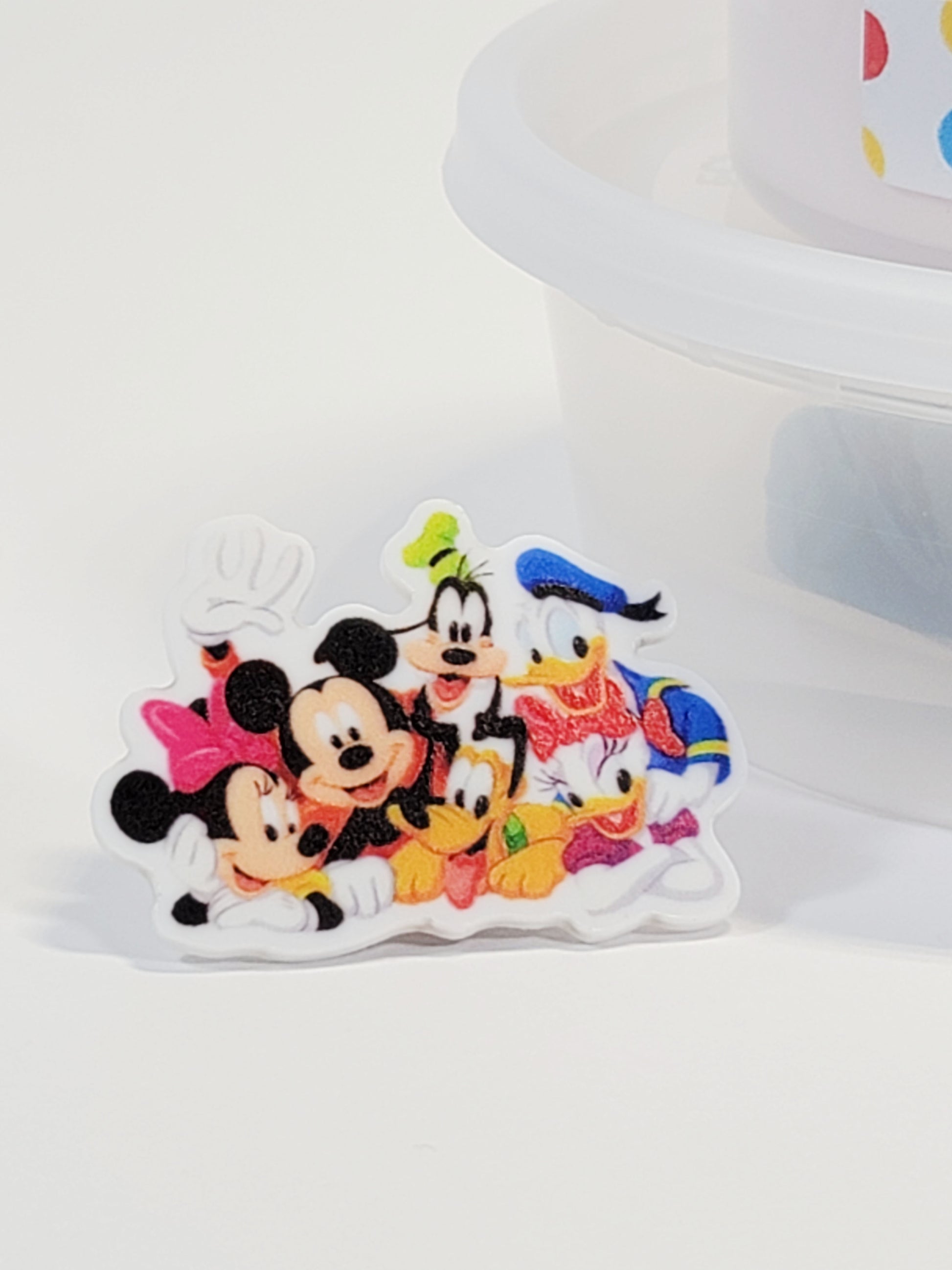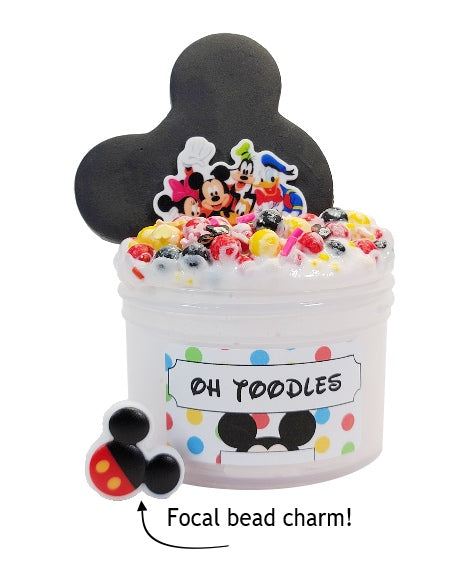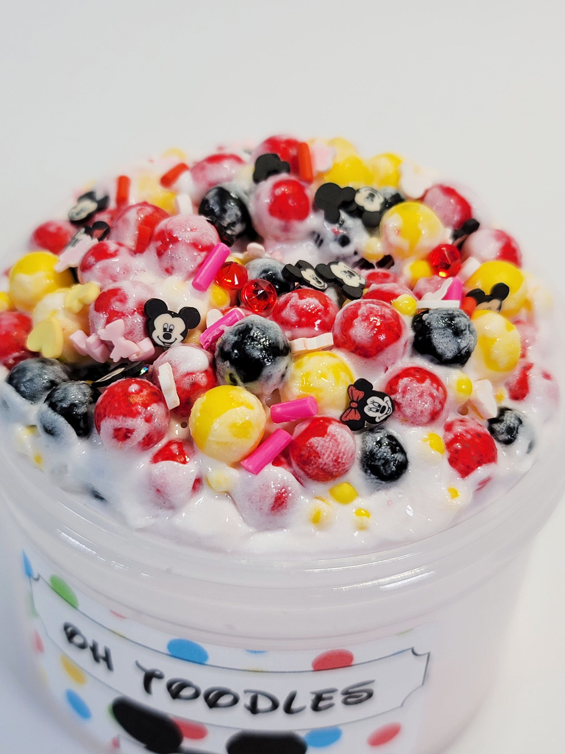 ADDONS - topped with floam balls, fun Mickey/Minnie sprinkles, Disney characters flatback and Mickey focal bead.