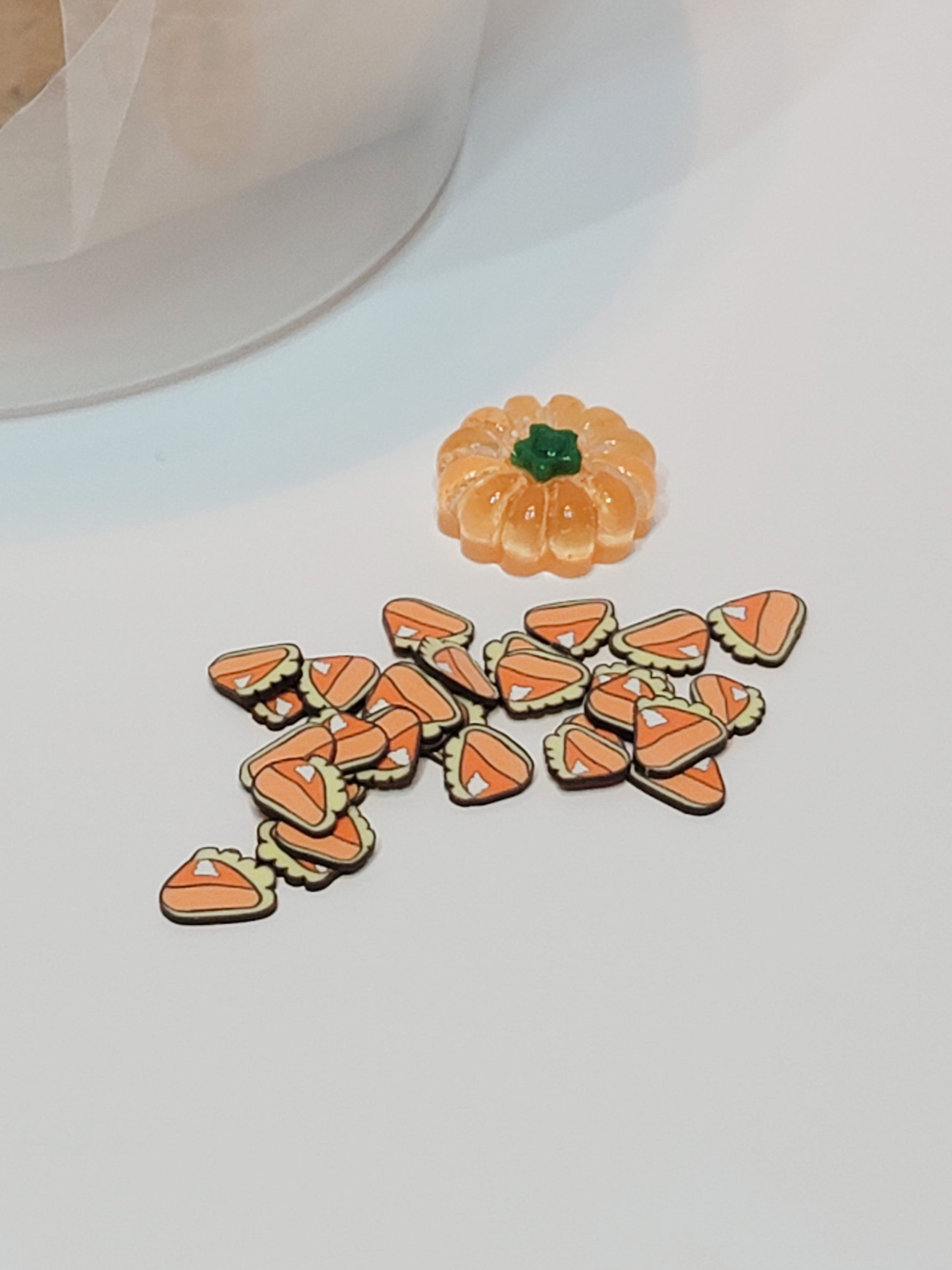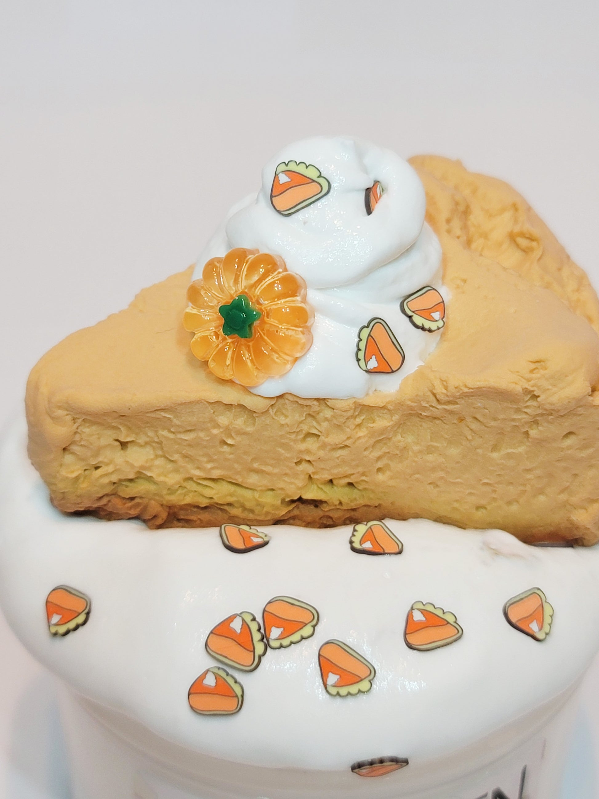 ADDONS - topped with realistic clay pumpkin pie slice, fun pumpkin pie sprinkles, and a pumpkin charm.