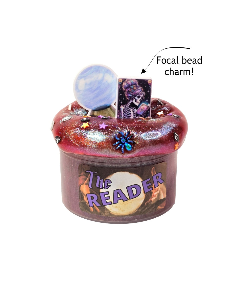 ADDONS - topped with The Reader focal bead, spider charm, fun mythical sprinkles and crystal ball flatback.